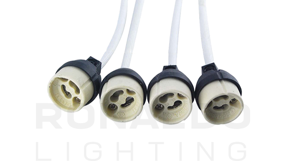 2A 250V Ceramic Lamp Holder for Halogen and Led Bulbs with GU10/GZ10 fitting, double wire clamp springs for flexible cables with max ø 1,8 mm contact pins, through-holes for M3 screws, M10x1 coupling. For II class lighting components. Rated operating temperature 270°C
