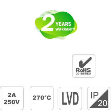 2A 250V Ceramic Lamp Holder for Halogen and Led Bulbs with GU10/GZ10 fitting, double wire clamp springs for flexible cables with max ø 1,8 mm contact pins, through-holes for M3 screws, M10x1 coupling. For II class lighting components. Rated operating temperature 270°C